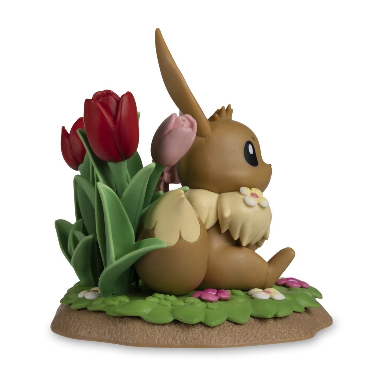 O que é mais adorável do que Eevee? Que tal Eevee sentado com algumas flores, cercado por mais flores? A Figura Eevee apresenta o Pokémon Evolução sentado num campo ao lado de uma cesta de piquenique (cheia de mais flores), surpreso com uma pequena inclinação da cabeça. Perfeito para amantes de Eevee ou curadores de fofura.